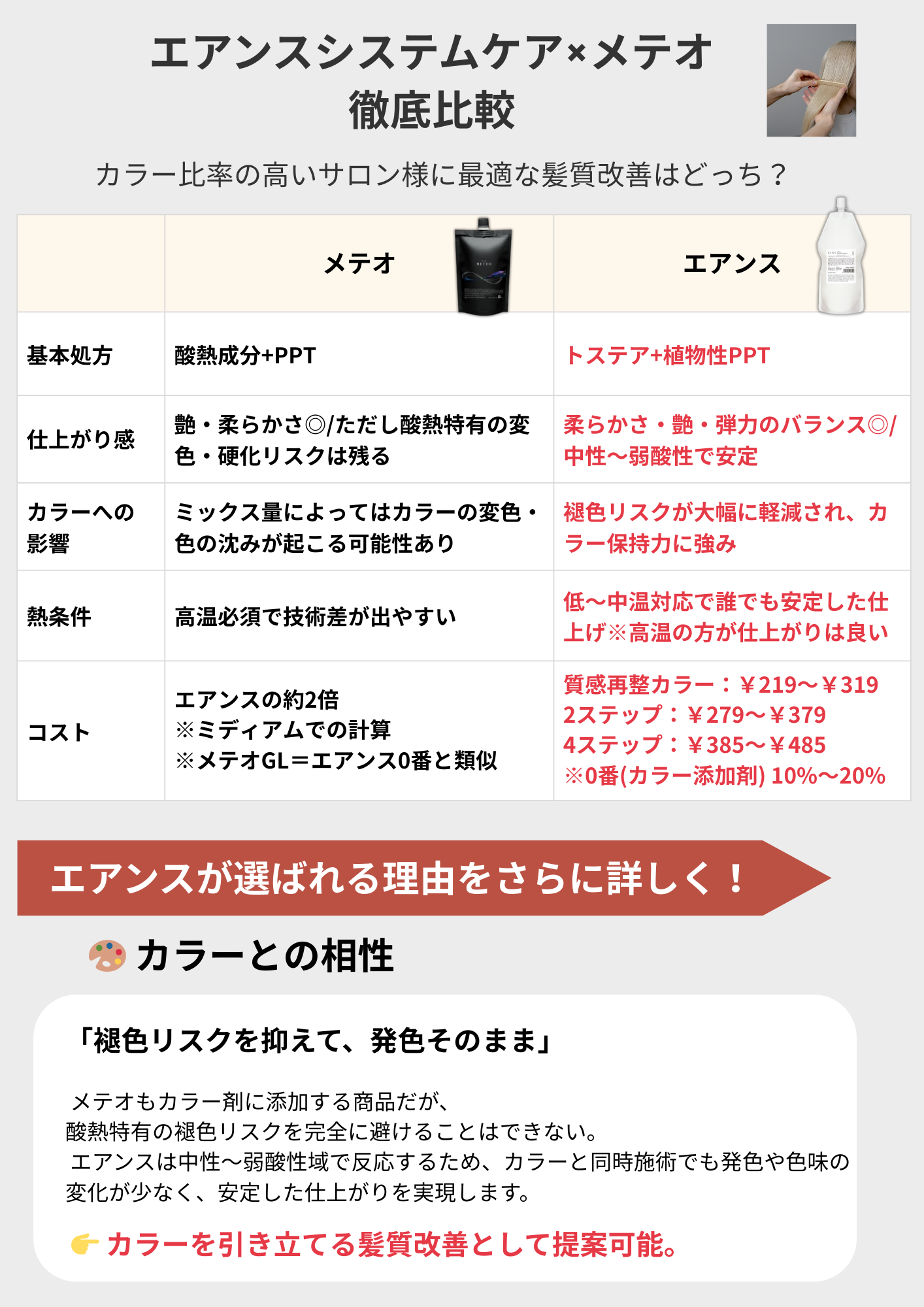 一方で カラー施術との相性 や 継続的なリピート性 を考えると、 「本当にサロンにフィットする商品とは?」と感じる方も多いはずです。
