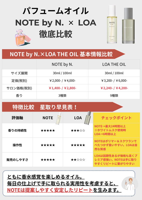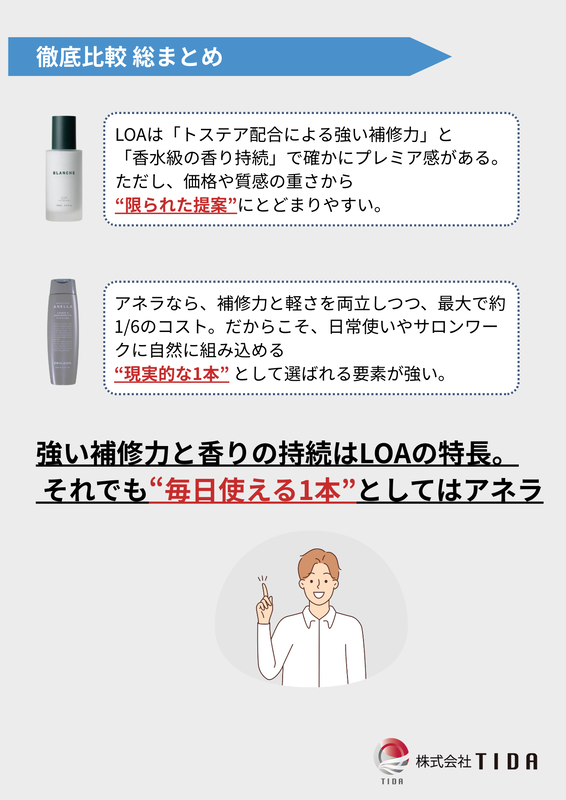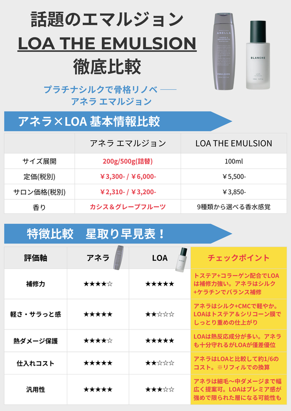 そこで本資料では、LOAと他人気アイテムの「スタイリングオイル」・「エマルジョン」を徹底比較。