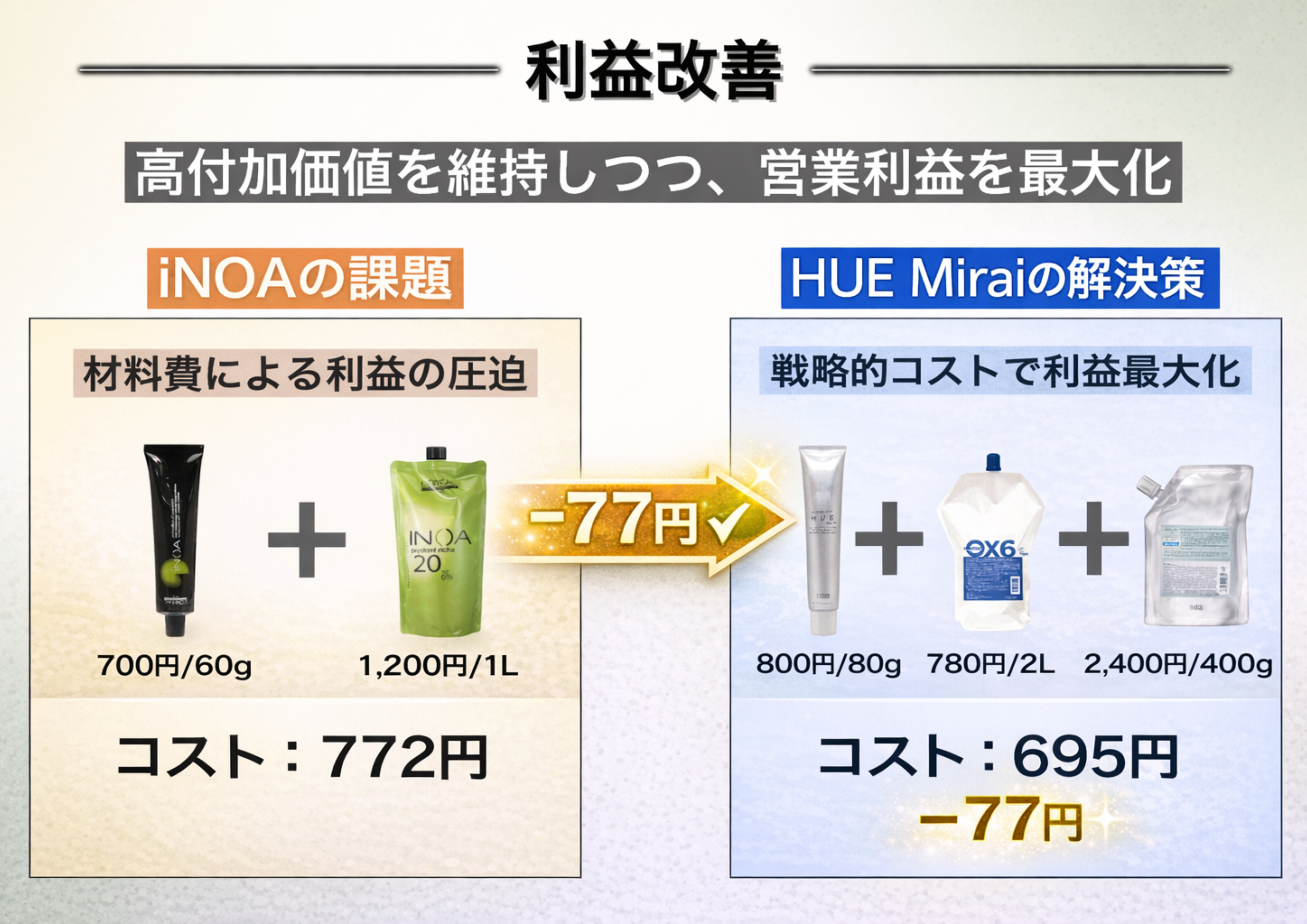 継承しつつ、サロン様の利益を最大化するために設計された次世代の高単価ヘアカラー剤です。